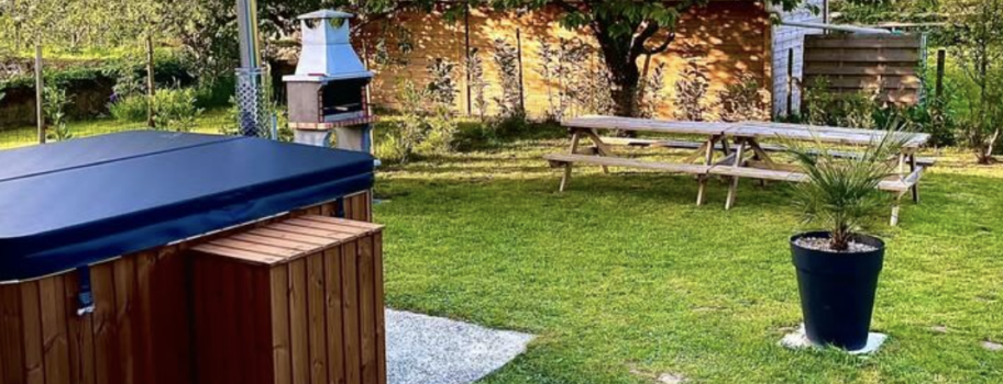 Le lieu est hyper agréable avec ses grandes pièces à vivre, dont un salon à l’étage très cosy, ses 14 couchages, une salle de jeux pour les grands enfants et un jardin magnifique cloisonné et équipé d’un grand bain nordique.